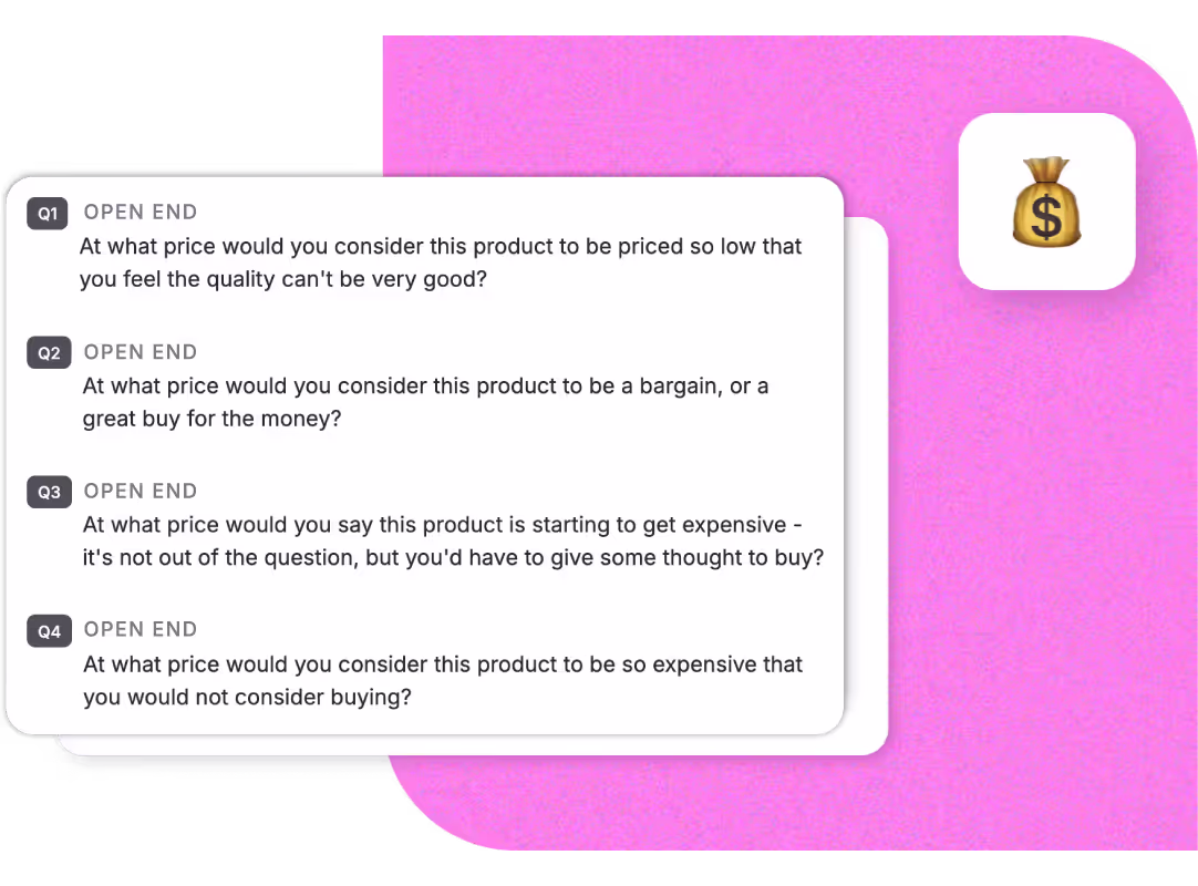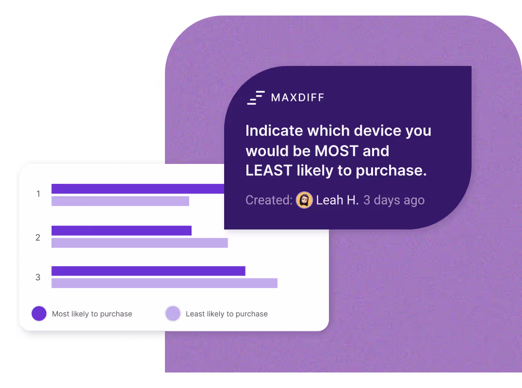 Identify the product features your consumers want to see most by conducting integrated and iterative quant and qual research. Use a MaxDiff study to narrow down your innovative feature ideas, and follow up with a Suzy Live In-Depth Interview (IDI) and In-Home Usage Test (IHUT) to have consumers test out your prototypes on video.